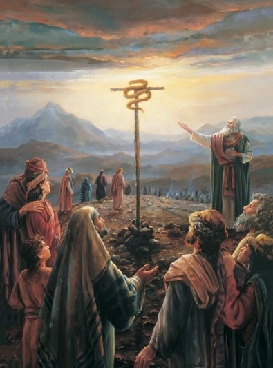 “Faze para ti uma serpente ardente e mete-a sobre um poste. Todo aquele que for mordido, olhando para ela, será salvo” (Nm 21, 8). Moisés mandou, pois, fundir uma serpente de bronze e fixá-la numa aste. E, diz o Livro dos Números, “se alguém era mordido por uma serpente e olhava para a serpente de bronze, conservava a vida” (Nm 21, 9).