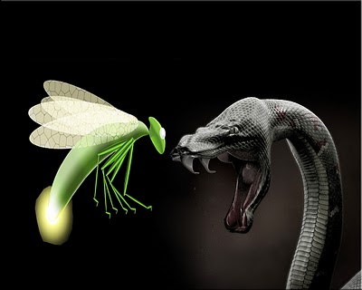 No terceiro dia, já sem forças, o vaga-lume parou e falou á serpente :